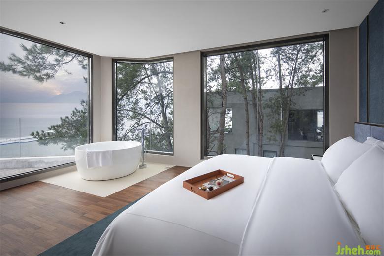 酒店設(shè)計師巧妙地將光的模樣借空間展現(xiàn)出來,用影締造出超越了“極少”的豐富美感。