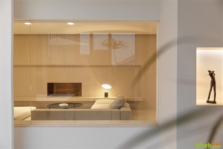 一旁半內(nèi)嵌式的書(shū)架,絲毫沒(méi)有占用多余的空間,自由排放的書(shū)目隨手可取,各式擺件也為空間增添了些許藝術(shù)與潮玩的魅力。