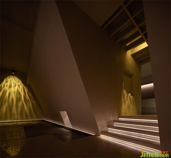 推開(kāi)O.GO SPA的大門,我們需要向下走4到5級(jí)的臺(tái)階,進(jìn)入到下沉式空間,可以看到的是類似于金字塔一樣的造型,站在一樓SPA設(shè)計(jì)大廳中央仿佛來(lái)到了異世界,與現(xiàn)實(shí)世界相隔的那一面墻在這一瞬間似乎也不再重要。