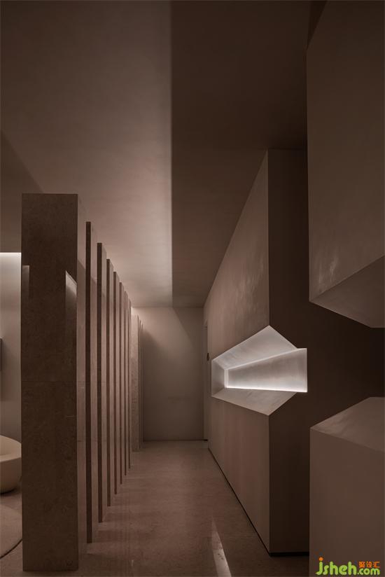 設計中規(guī)劃了一條將近3米的走廊,好似一段時空隧道,連接現(xiàn)實與夢境,連接過去與未來,漫步在走廊中無法確定接下來的SPA設計目的地是哪里,O.GO SPA每一處都充滿著未知的驚喜。