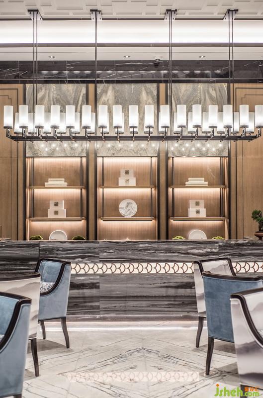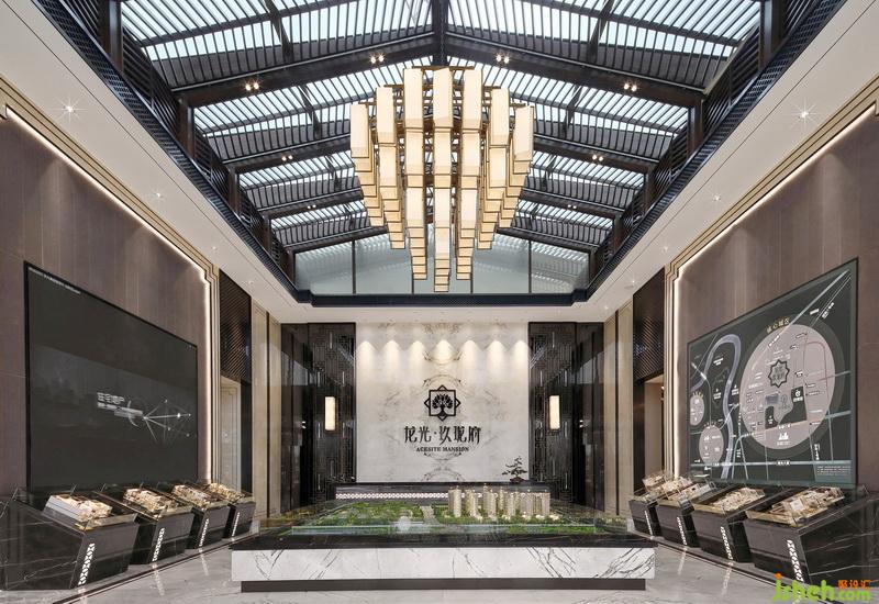 大氣恢弘近十一米空高的大堂加上接待背景墻巨幅大理石對稱拼花,接待大廳作為售樓處的第一空間,線條簡潔大氣,沙盤上方的暖色燈光與磨砂黑金屬的材質(zhì)表面交映,層層遞進,沉浸了整個空間的色彩。