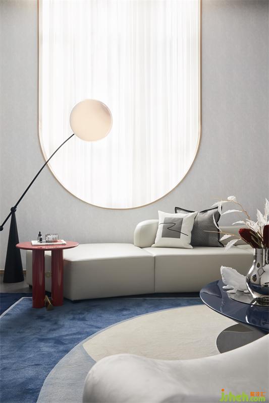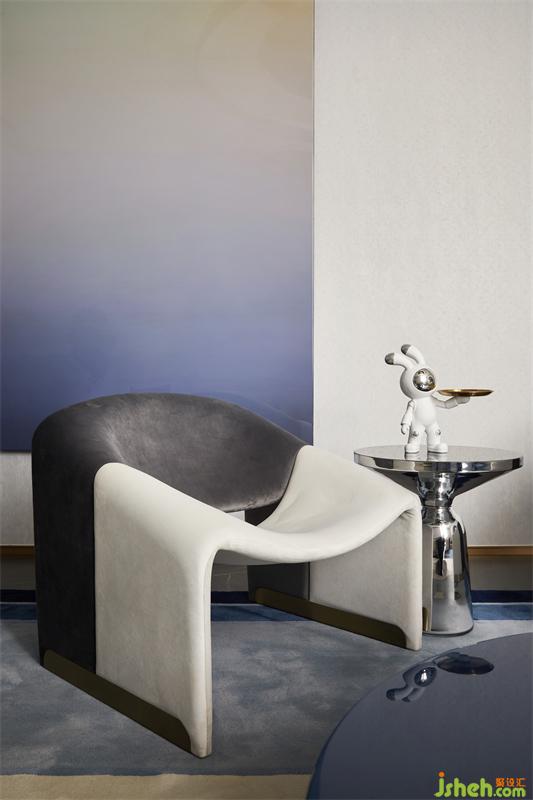 藝術(shù)的張力來(lái)自于多種色系與幾何形態(tài)錯(cuò)落有致的搭配,夢(mèng)幻的藍(lán)色與跳躍的橘紅色,繪寫(xiě)出空間優(yōu)雅豐富的意象,而光在穿越玻璃引入室內(nèi)后,空間更顯時(shí)尚前衛(wèi),形成了一種獨(dú)特的立體感。