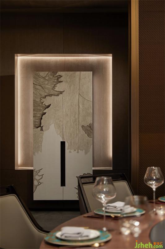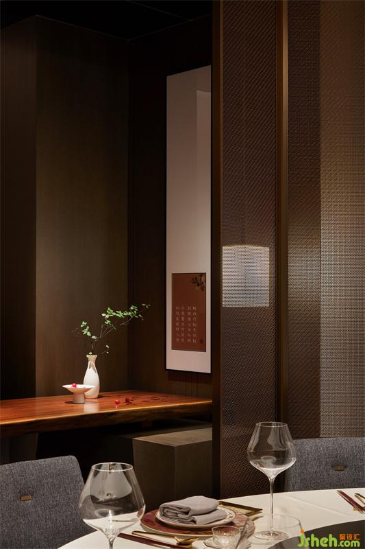 在空間的處理手法上盡量簡潔,包廂以門廳、就餐區(qū)、休息區(qū)分段式構(gòu)成,在滿足功能的前提下合理安排空間尺度,擴(kuò)大空間感知,風(fēng)雅中滿是悠然的意境。