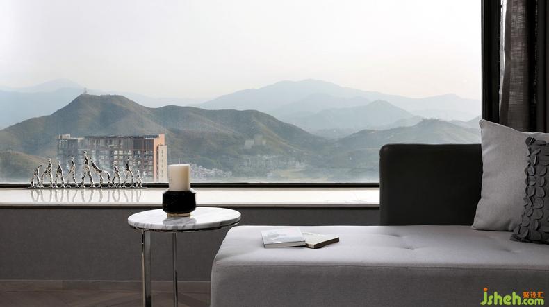 推開門,入眼即是滿室的陽光,客廳大大的飄窗,充分保留玻璃的設(shè)計(jì),將香港山地全貌盡收眼底,晴天,可一眼萬里,陰雨天,卻是一副水墨山水畫,室內(nèi)設(shè)計(jì)師整個(gè)空間以自然為背景,通透明亮,富有變化。