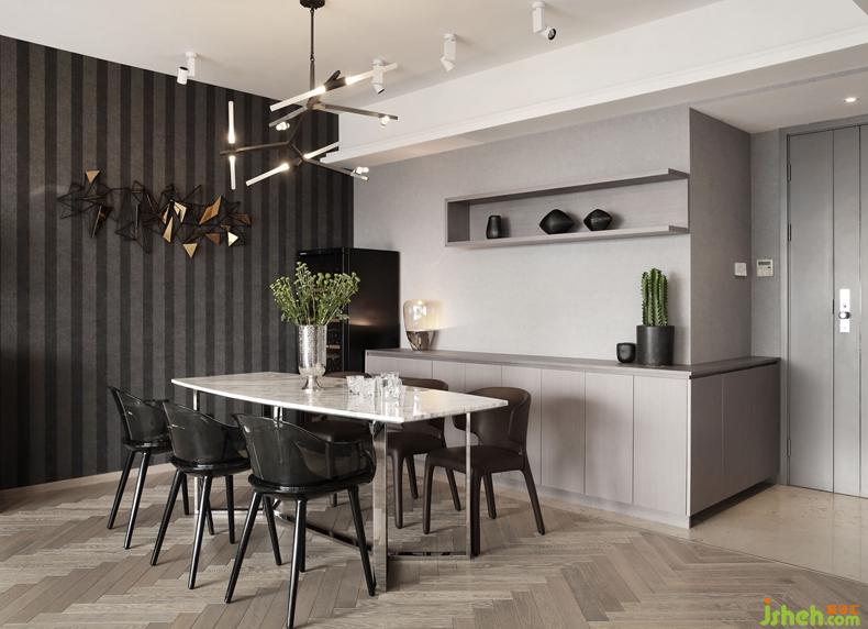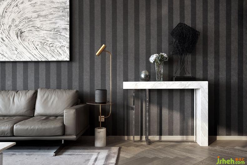墻身沒有任何多余的設(shè)計(jì)造型,僅以深淺灰相間的墻紙綴以立體石膏纖維畫,搭配人字拼鋪灰色木地板,室內(nèi)設(shè)計(jì)師營(yíng)造出簡(jiǎn)約而雅致的居住氛圍。