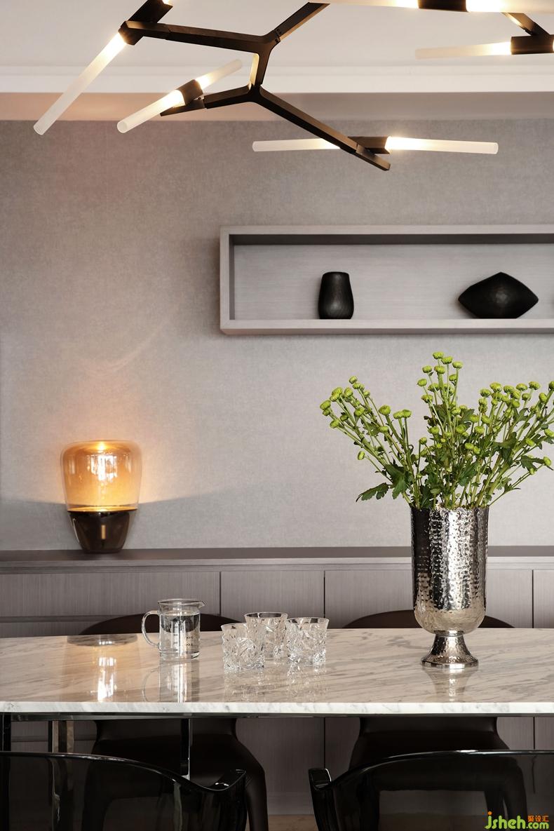 客廳飄窗延伸至了露臺(tái),同樣純粹的深灰色調(diào),加入綠植、鮮花等裝飾,讓整個(gè)空間更加有生活氣息,每當(dāng)夜晚來臨,窗外萬家燈火,室內(nèi)燈光迷人,品一杯美酒,露臺(tái)搖身一變成為了酒吧,有酒有故事,正是創(chuàng)作的好時(shí)機(jī)。室內(nèi)設(shè)計(jì)師