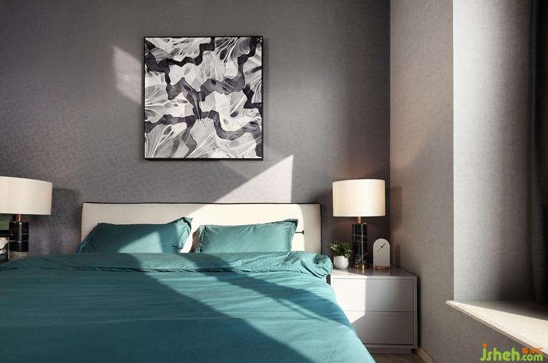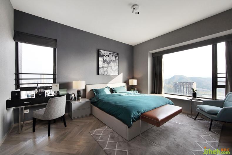房間延續(xù)了客廳的灰色調(diào)風(fēng)格,室內(nèi)設(shè)計(jì)師搭配明亮的墨綠色以及透明腳的床頭凳,既帶有現(xiàn)代女性之美,又將生活藝術(shù)化。