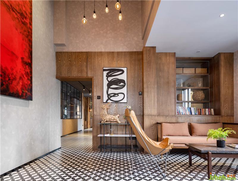 乘電梯至6層,再步行到樓頂是餐廳與健身房??臻g環(huán)境的設(shè)計(jì),要滿足人身心靈的需求,7層前廳的藝術(shù)廊,紅與黑巨幅藝術(shù)畫、數(shù)十盞鎢絲燈、一顆綠植都蘊(yùn)藏著深層的情感內(nèi)涵,為我們構(gòu)建出豐富的內(nèi)在世界。