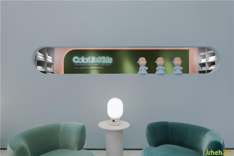 本案服務(wù)品牌為七彩人生,二十多年專注于兒童、青少年家具研究生產(chǎn)。此次設(shè)計(jì)需要對多個(gè)系列的產(chǎn)品同時(shí)展示,既要有品牌的整體感,又要有不同系列的特性美。對于展示空間來說,只有人對空間有了好感,才能增多了解產(chǎn)品的機(jī)會。