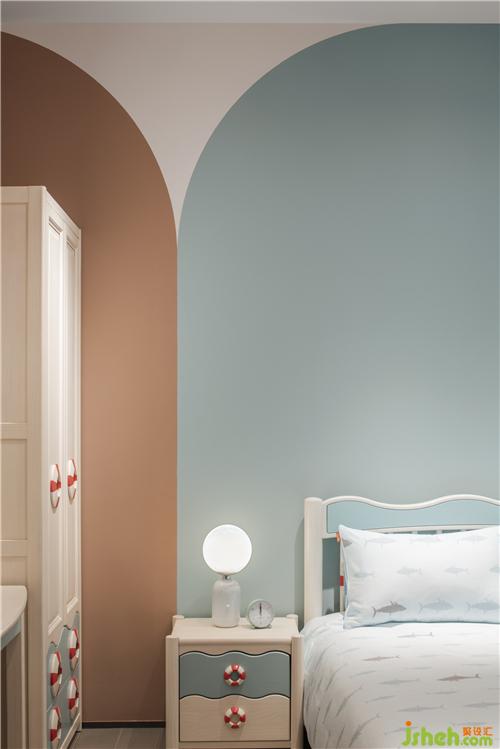 穿過時光廊便是彩色家具展區(qū),產(chǎn)品顏色或粉或藍(lán)或綠,色彩繽紛,于是墻身選用了雪青灰做底襯。