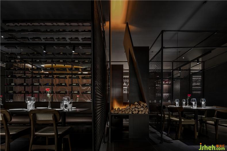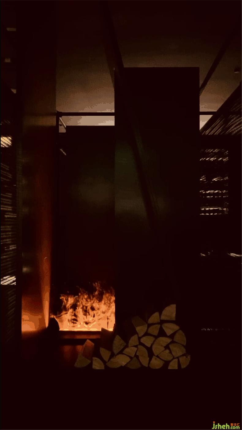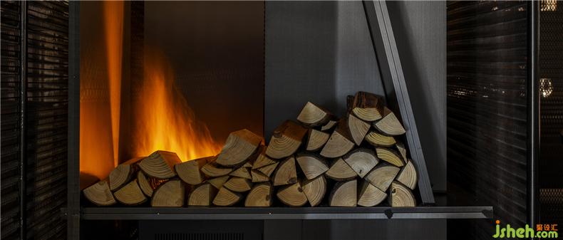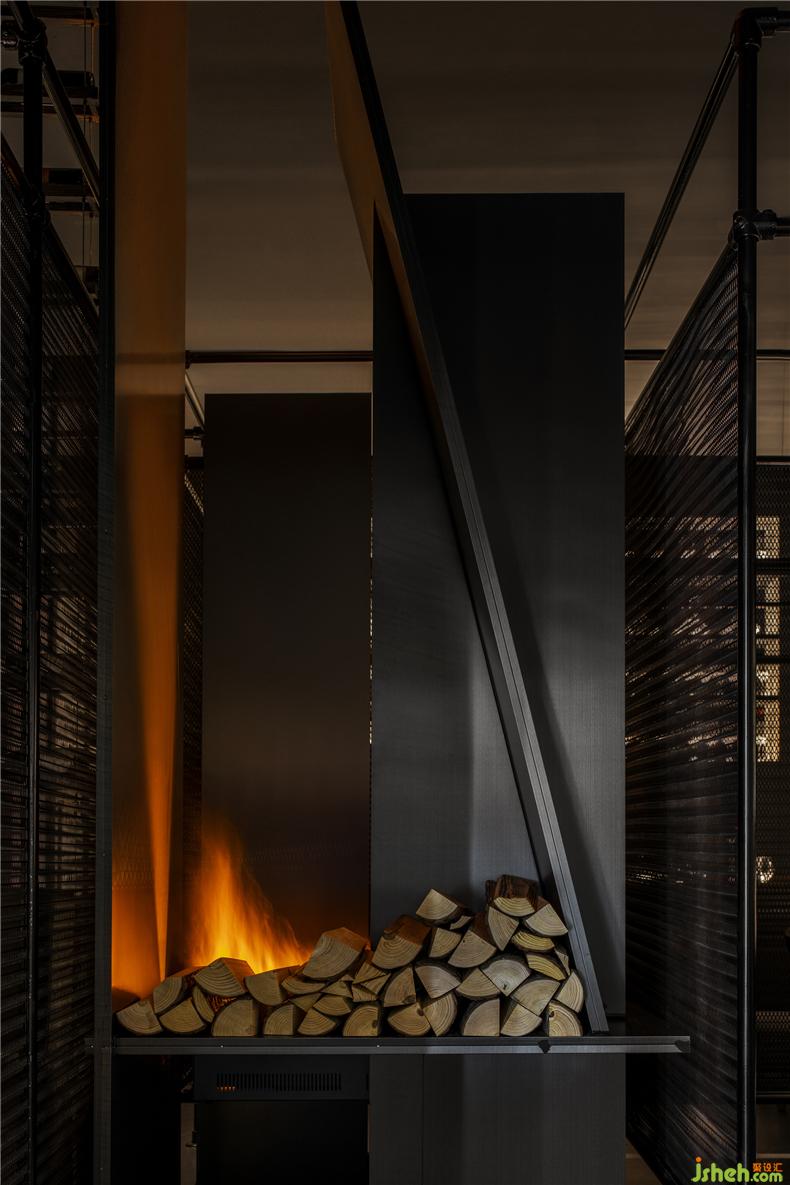 中央位置處,金屬板材搭建的三角空間里,餐廳設(shè)計“柴火”正搖曳舞動,格外引人注目,就像是艷麗的外表中藏著熱情如火的心,這種碰撞讓人充滿了想象