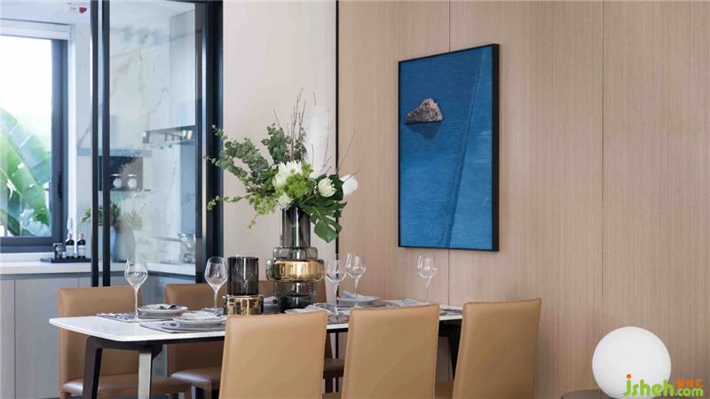 極簡的藝術(shù)掛件與燈飾,方圓之間線條的對比,在通透的環(huán)境下相互映射令空間擴(kuò)容,讓每處細(xì)節(jié)都透露雅致的藝術(shù)美感。