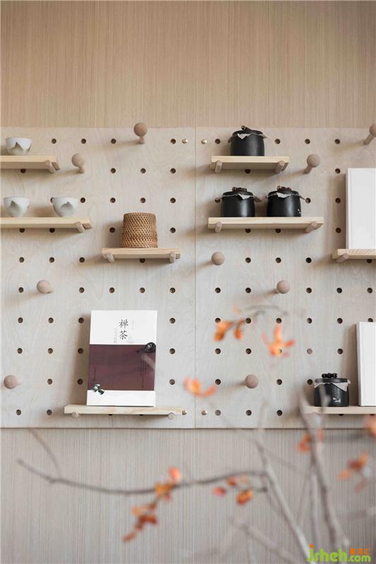 茶室盡顯中式儒雅,契合居者對禪意生活的向往與追求;桌腿的矩形設(shè)計打破傳統(tǒng)的條形桌腿的刻板印象,與弧形椅背形成巧妙的視覺差。