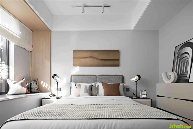 長輩房的設(shè)計強調(diào)了以純粹的材質(zhì)體現(xiàn)品味,大面積的木色為整個空間帶來溫潤的視覺體驗。細(xì)膩親膚的床品漸層相疊,更為睡眠區(qū)營造出寧靜與溫暖。