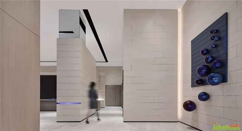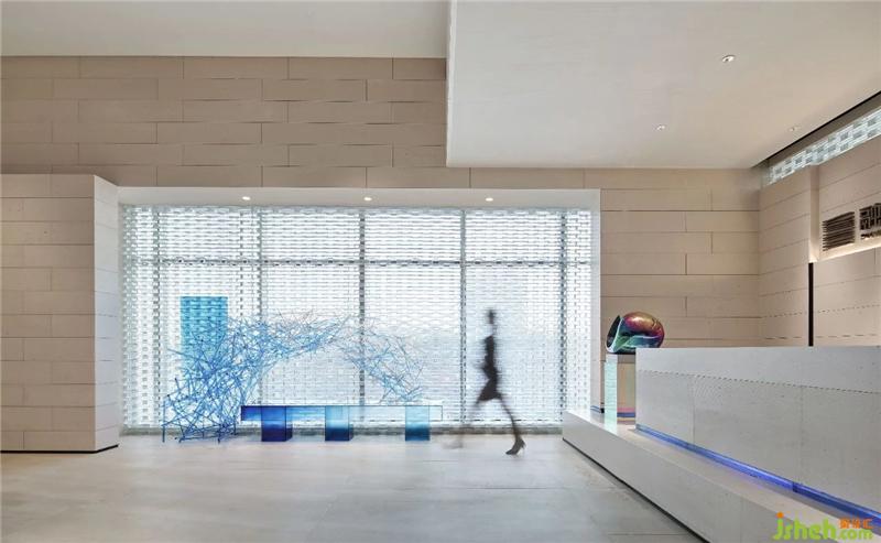 半透明感的水晶磚宛如陽光下的一尺窗紗,其設(shè)計(jì)意向來自于魔方的格狀紋理。
