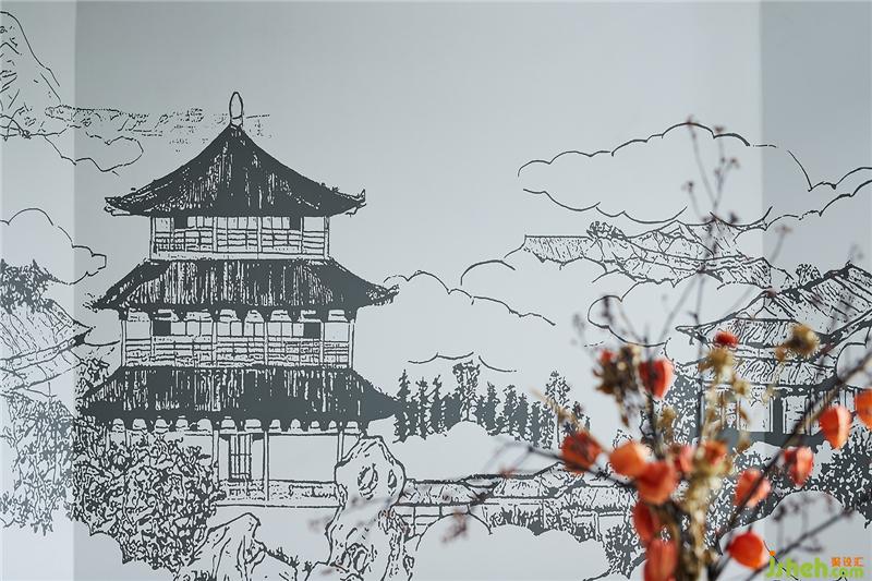 背景墻面的園林畫作大氣而富有內(nèi)涵,將人文氣息呼之欲出,增強(qiáng)了空間的立體感與細(xì)節(jié)感,讓畫不再只是一幅畫,而是整個(gè)空間氛圍中的一部分。