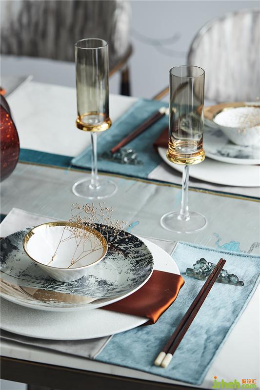 餐桌擺件精致而有序,不僅提升了空間的裝飾檔次,也將用餐的儀式感拉滿,讓氛圍自在流動(dòng),以此營(yíng)造不同的視覺感官,體現(xiàn)空間的包容性,傳遞著精致的“慢生活”生活方式。