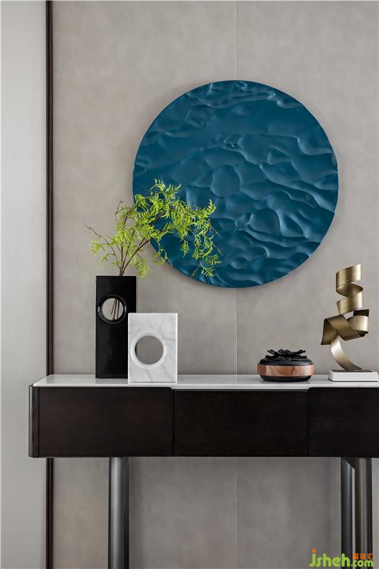 裝置品如湖水般波瀾的紋理還原了自然界靈動(dòng)的氣息,抽象的現(xiàn)代藝術(shù)手法演繹出了空間的動(dòng)態(tài)美學(xué),將清雅靈動(dòng)展現(xiàn)的恰到好處。