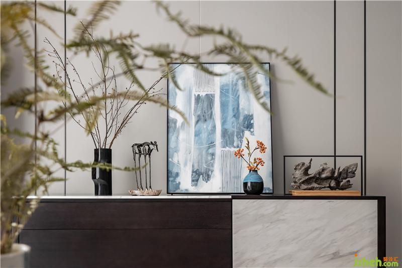 瓷瓶上恍若天成的紋理清雅而含蓄,靜靜的訴說(shuō)著東方文化的內(nèi)斂與風(fēng)華,呈現(xiàn)出了一派自然,純凈之態(tài),柔和了空間的視覺(jué)感官,營(yíng)造出了更有深度的空間氛圍。