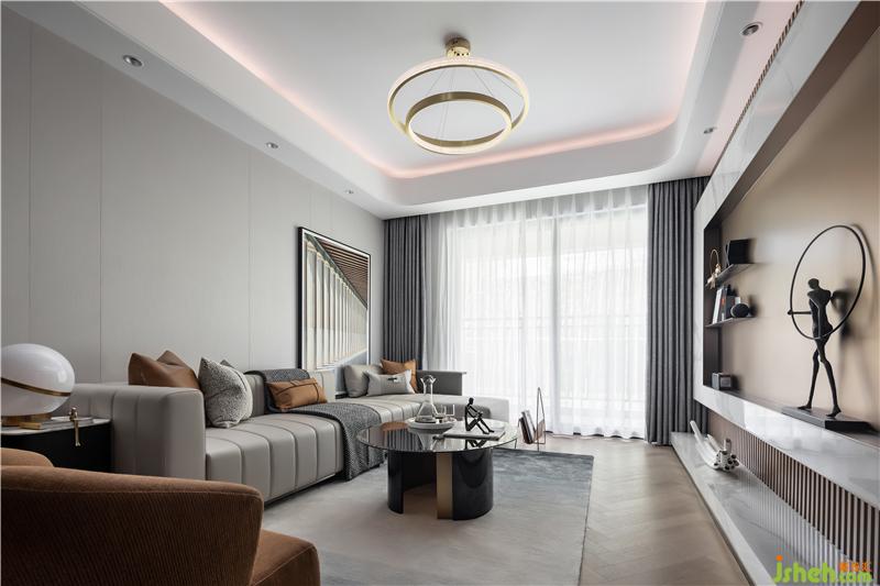灰白的主色調(diào)溫柔而沉穩(wěn),橙色、棕色等暖色調(diào)的融入又賦予了空間活力的氛圍,彰顯層次感,讓氣質(zhì)融入生活,讓格調(diào)渲染空間。