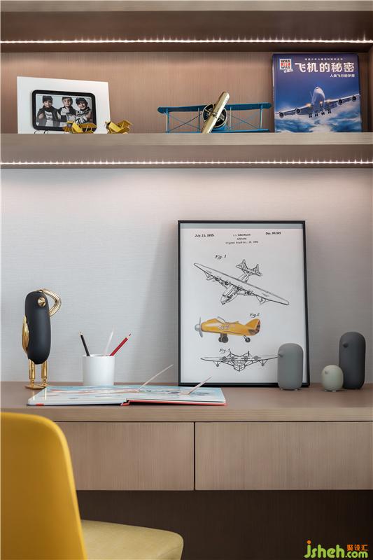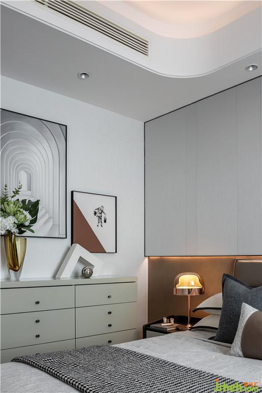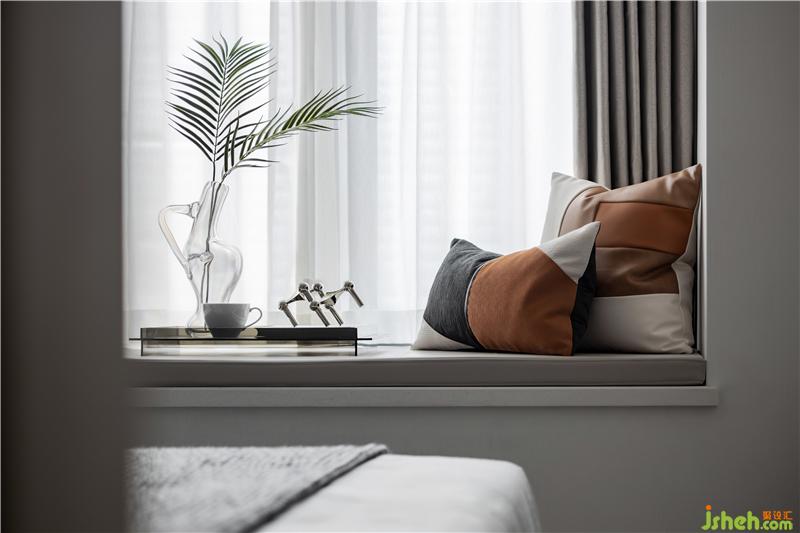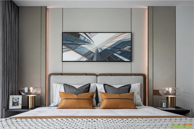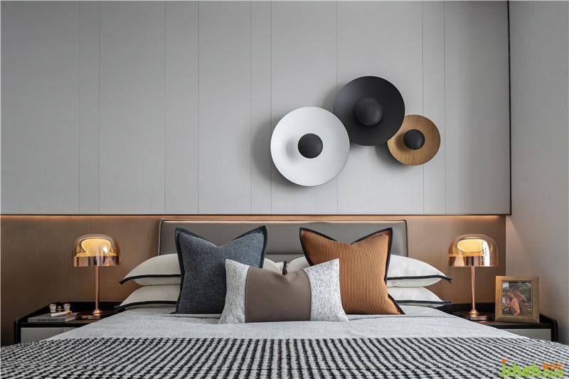 背景墻的裝置品不僅呈現(xiàn)出了別樣的層次感,又與整體空間色調(diào)相互呼應(yīng),營造出了深遠(yuǎn)的視覺感官。