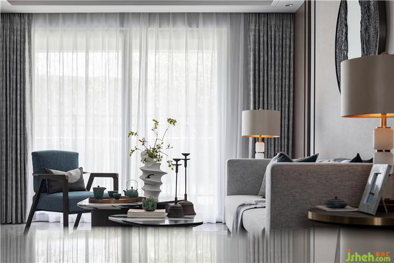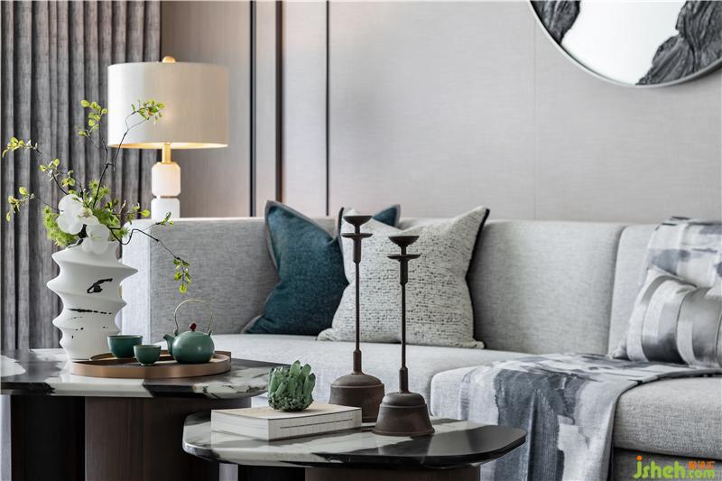 長沙樣板房設(shè)計客廳氛圍淡雅而不清寂,儒雅的東方美感,意境空靈,碧色茶盞、湛藍香爐、生機綠植、皆于含蓄內(nèi)斂中書寫生活的溫度,并賦予了空間細膩的優(yōu)雅。