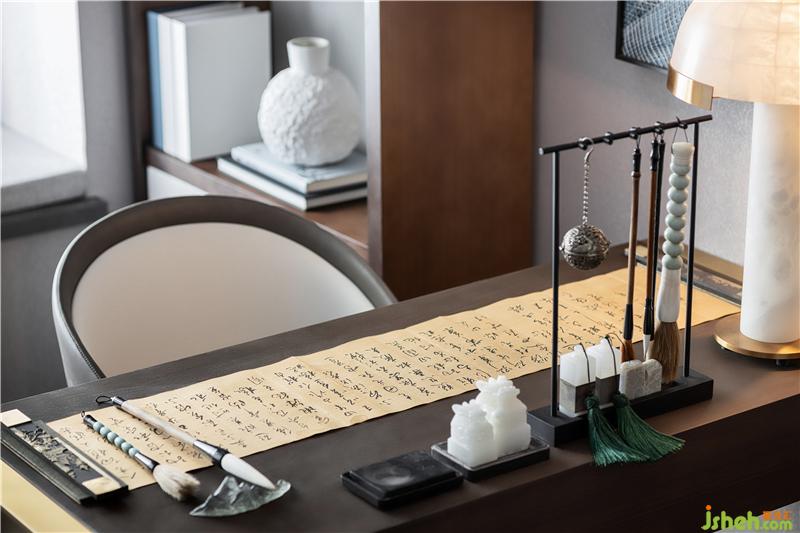 以寫意筆觸,回應(yīng)獨屬于東方清韻的人文臻境,無需濃墨重彩,只余素雅之姿,豐富書房層次感,詮釋東方文化的精粹,并將略顯沉重的傳統(tǒng)元素,以更加優(yōu)雅輕盈之態(tài)呈現(xiàn)于空間之中
