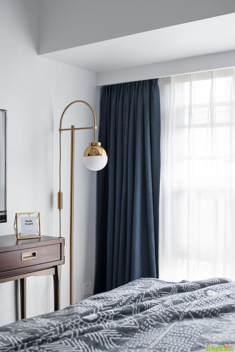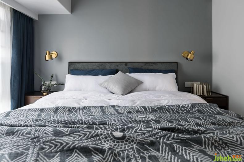 主人房延續(xù)了客廳的灰白色調(diào),局部以金色點(diǎn)綴空間,搭配北歐表情的經(jīng)典床款,經(jīng)久耐看。