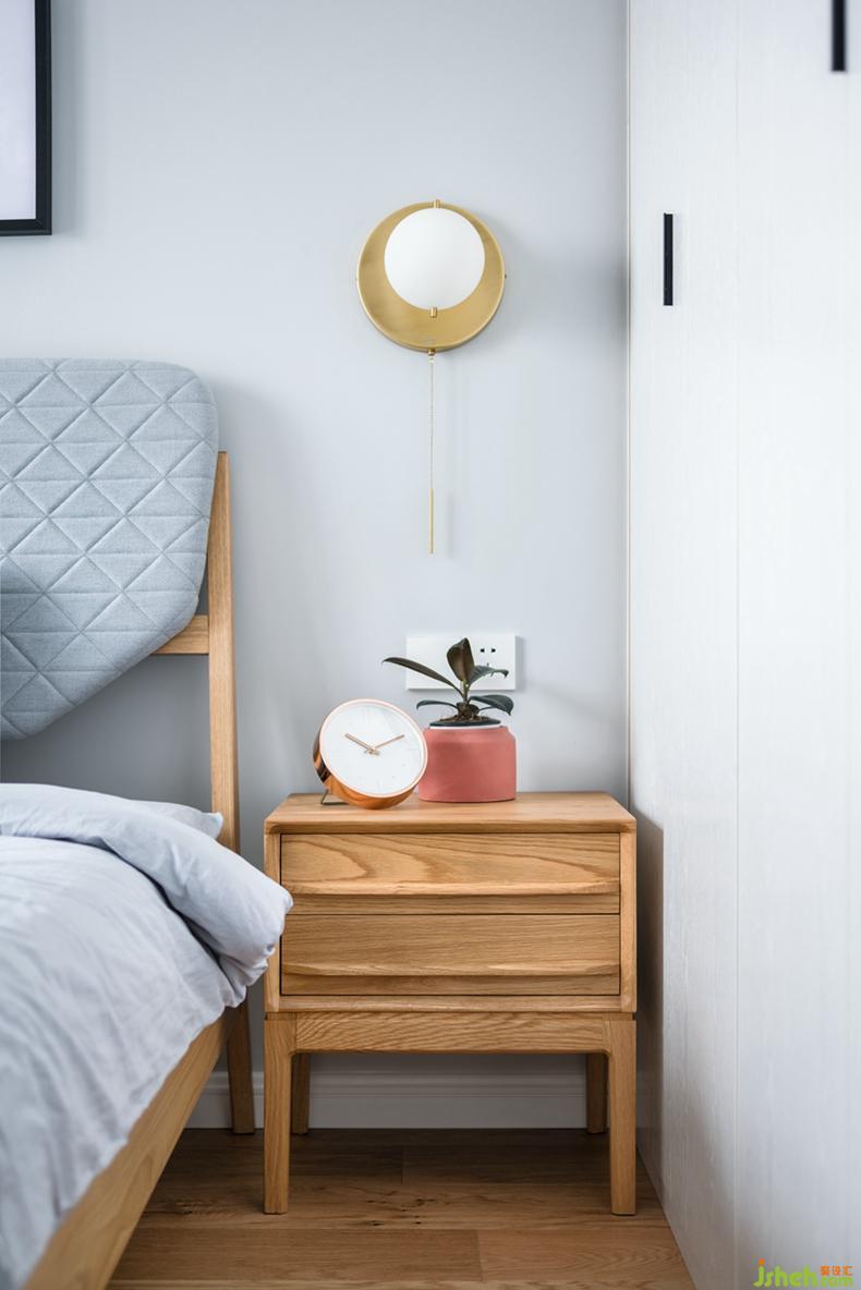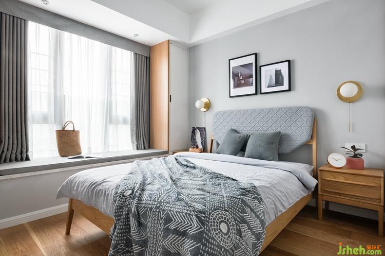 主人房延續(xù)了客廳的灰白及原木色調(diào),通過床品、窗簾、靠枕,搭毯等織物提升室內(nèi)的情調(diào),使臥室更趨于溫暖,同時(shí)也能體現(xiàn)一個(gè)人的生活品味。