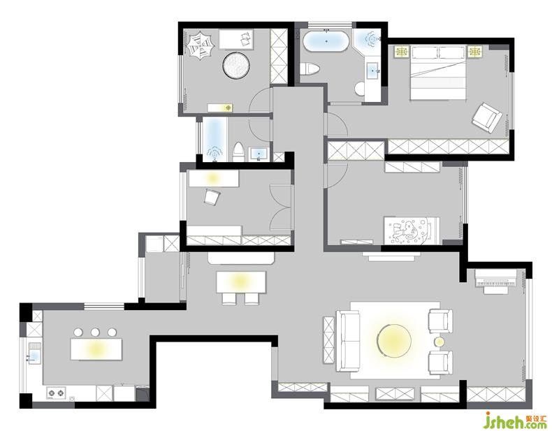原有戶型通往臥室的通道過于狹長,主衛(wèi)空間小,且主臥過道存在浪費。設(shè)計師便利用主臥通道空間將主衛(wèi)闊大,打造一個享受型主衛(wèi),不僅空間上得到優(yōu)化,使用上也更有功能體驗。通道闊大讓內(nèi)部的空間不至于因為狹窄而略顯壓抑。原有生活陽臺在空間位置與使用上都顯得尷尬,故設(shè)計師將廚房空間往生活陽臺延伸,豐富廚房的功能需求,使用上也更加舒適方便。