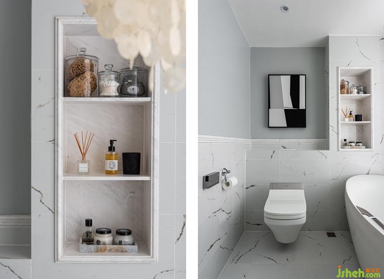 壁龕增強了衛(wèi)生間的收納功能,利用率極高,增加外框裝飾造型,從細節(jié)上豐富整個空間。