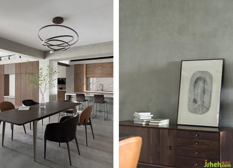 長條形的木紋餐桌滿足多人聚餐的使用需求,精巧的造型燈為餐廳提升現(xiàn)代氣息,充沛的陽光中用餐如同置身自然。