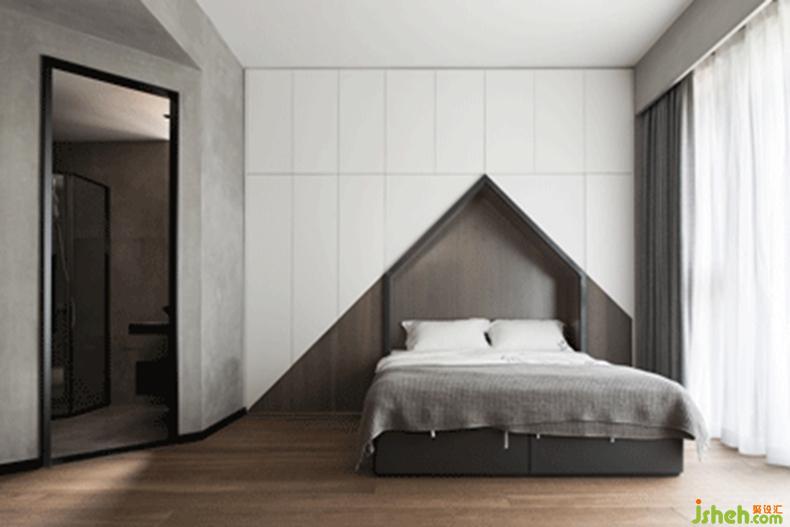 床頭背景與衣柜結(jié)合,硬朗的線條將材質(zhì)切割,造型與床頭屋形設(shè)計相呼應(yīng),在增加趣味性的同時又帶有一絲小總裁的低調(diào),空間上增添了“維度感”。深圳裝修公司
