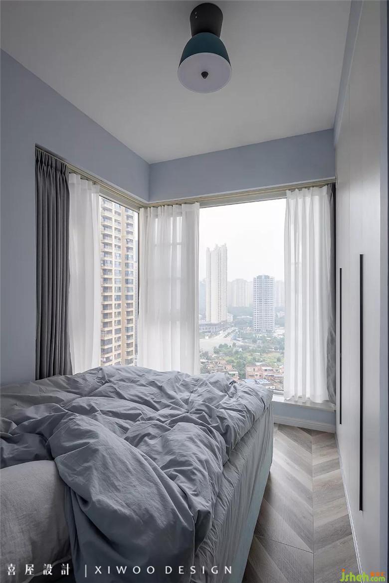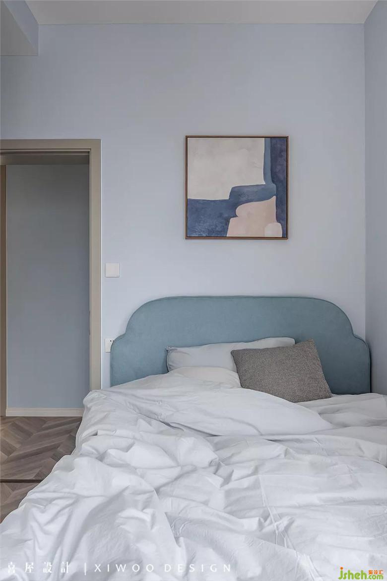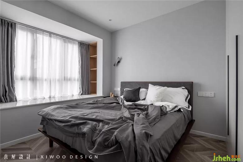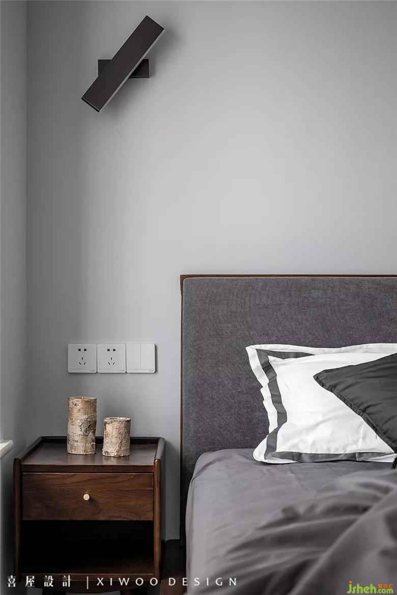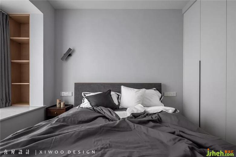 主臥在低飽和度的色調(diào)和床上用品,散發(fā)著簡約下的低調(diào),通過多維度的空間設(shè)計,將意境體驗(yàn)與生活功能巧妙結(jié)合。在熱鬧的靜寂中,悄然融入了灰與白之間,游離在光與影之間,在靜謐中摻雜著曖昧,曖昧中摻雜著放松,樸素靜美,耐人尋味。