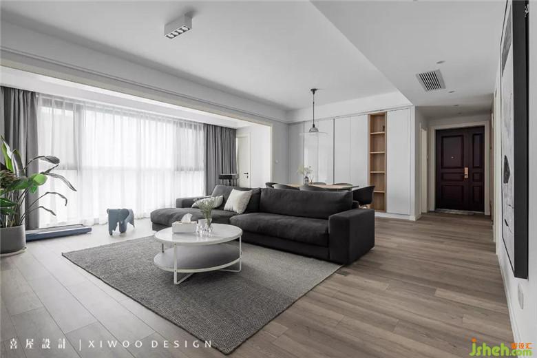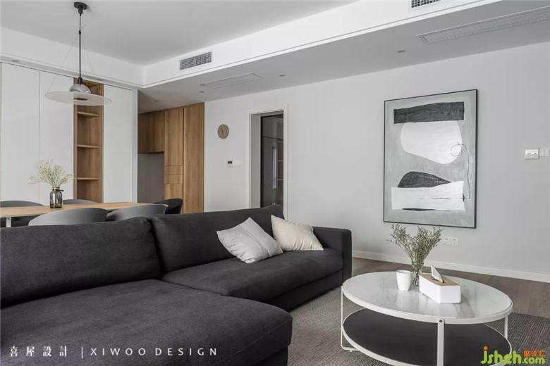 橫廳的最大益處在于分界規(guī)則中,利用軟裝家飾作為空間的魔法師,以經(jīng)典的灰色和木色完美結(jié)合,相互襯托、相互成就,打造出華爾不亂的居家空間。