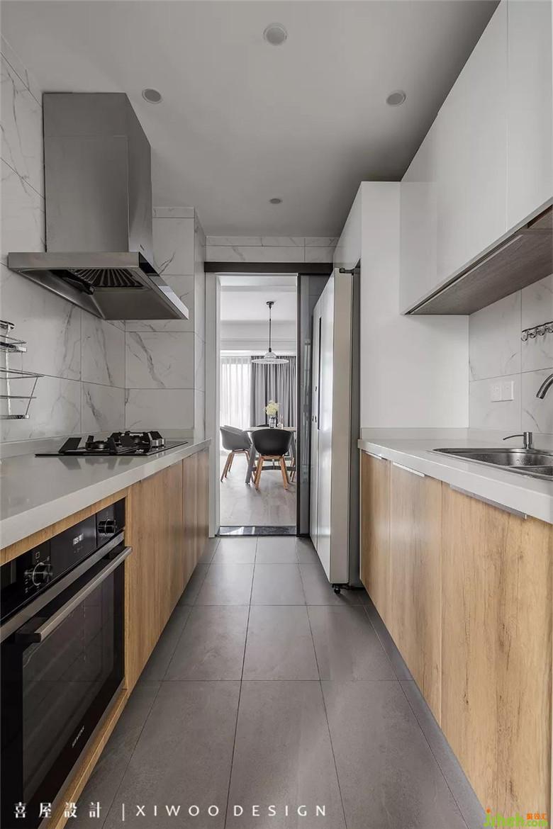 雙一字排開的廚房既做到“洗切炒”合理動(dòng)線、操作的高效便捷,又保證貯藏美觀。