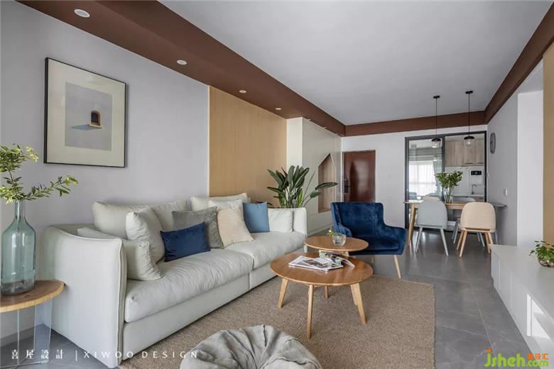 打通原陽臺(tái)空間,與落地窗的搭配無限擴(kuò)大景觀界面。紗簾掩映,視覺空間延伸至朦朧的室外,一天中的光線隨日月更迭而產(chǎn)生微妙的變化,交匯出室內(nèi)動(dòng)靜相間、富有活力的定格畫面。