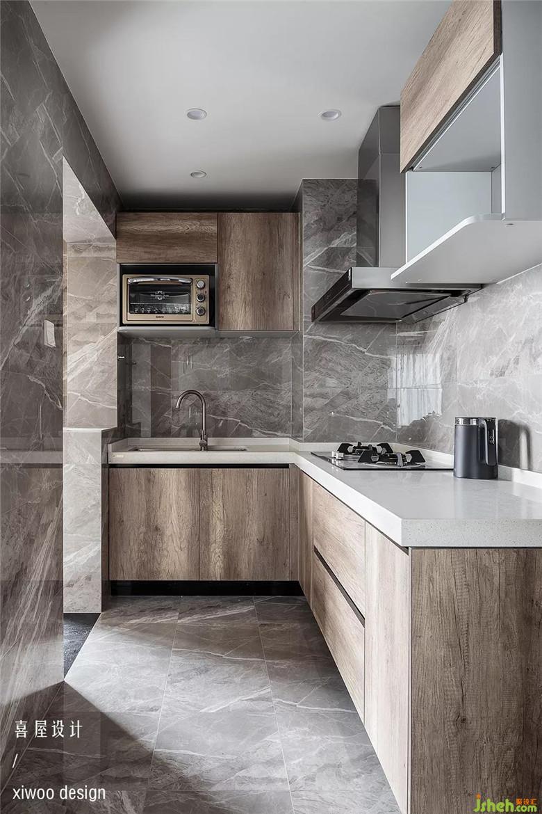 櫥柜門(mén)板選擇做舊木紋與墻地呼應(yīng),質(zhì)感讓音色更加美妙