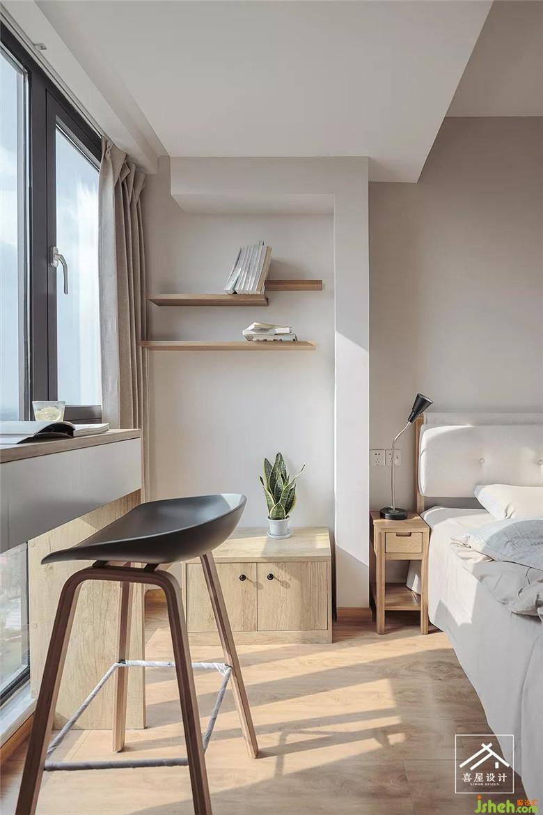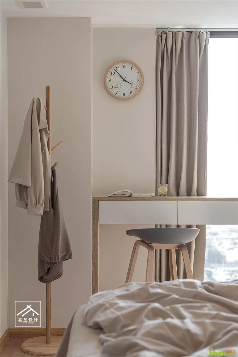 改造后的次臥,從客廳進(jìn)入,化解原始戶型臥室門(mén)正對(duì)浴室柜鏡子的尷尬問(wèn)題。