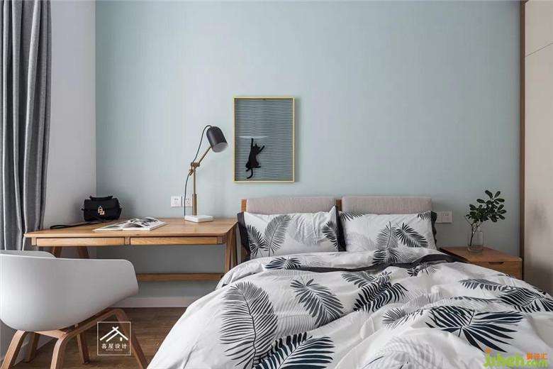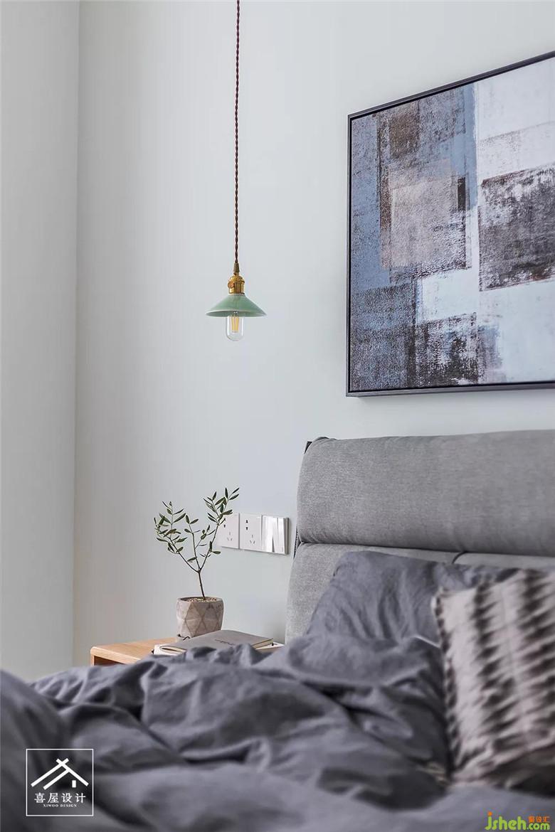 主臥室床頭兩個小吊燈,給予了空間的縱深感,又方便晚上看書使用。