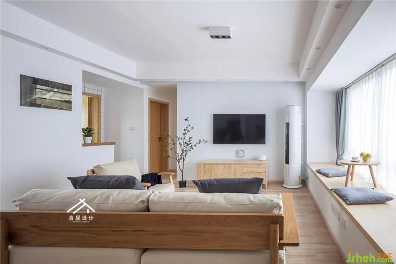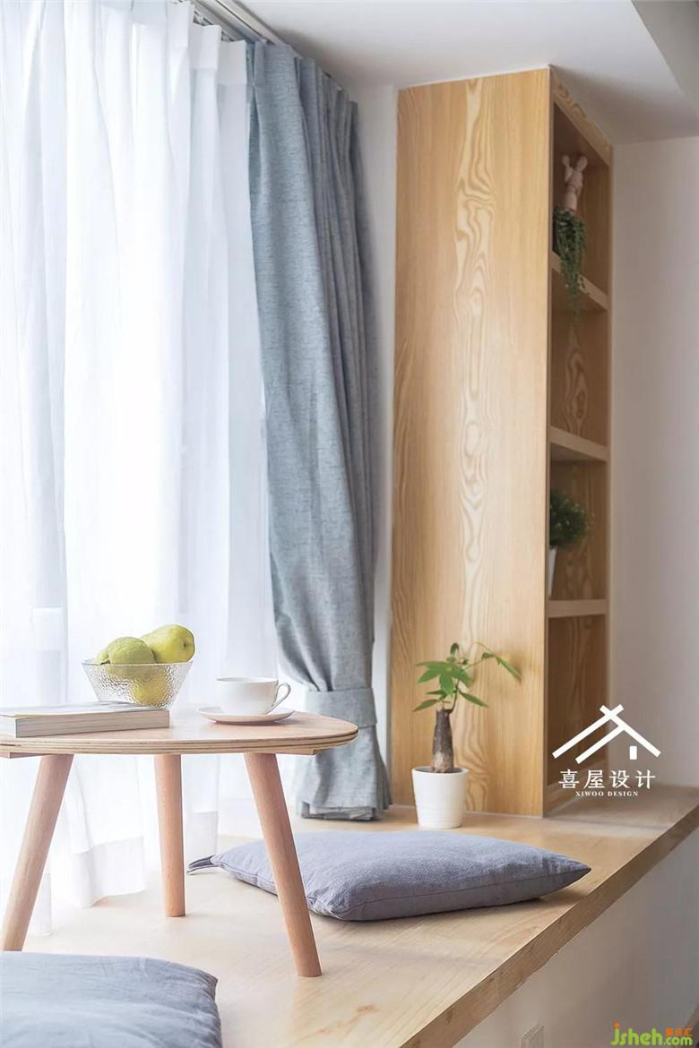 淺湖灰與木色匯聚到客廳的一剎那,時間仿佛慢了許多,就多了容納幸福的體量。我們把飄窗臺做成了木板的在上面看看書小憩都會非常舒服。