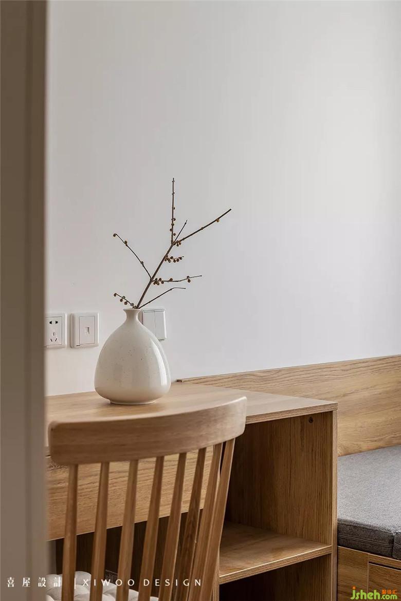 主臥以清淺的白色、靜謐的灰色和沉穩(wěn)的原木為主基調(diào),不做過多裝飾。室內(nèi)所有物件,或袒露材質(zhì)上的肌理與質(zhì)感,強調(diào)睡眠空間所需的舒適感;或融入整體感的衣柜和書桌,達到空間功能與比例上的均衡。
