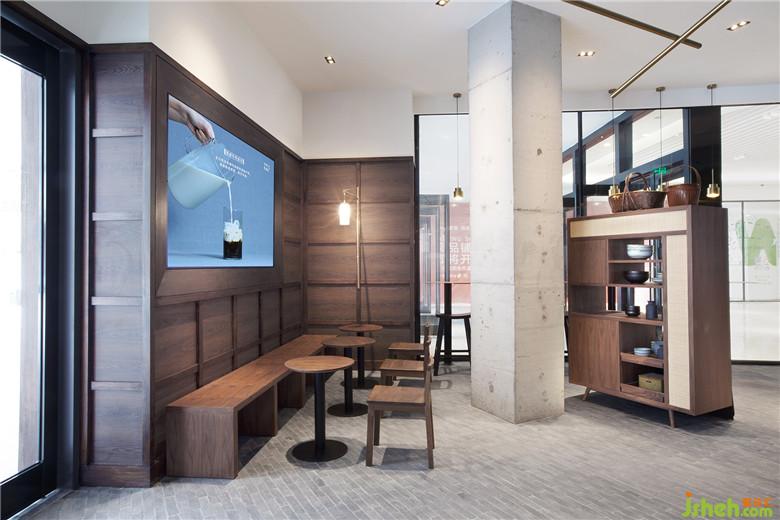 在空間布局上,敞開式的廚房在墻面采用了藍紫色的小磚,大大小小的深棕木色檔口,能夠360度看到廚房的工作人員制作手工飲品的過程,讓食客時刻感受著品牌的匠心。
