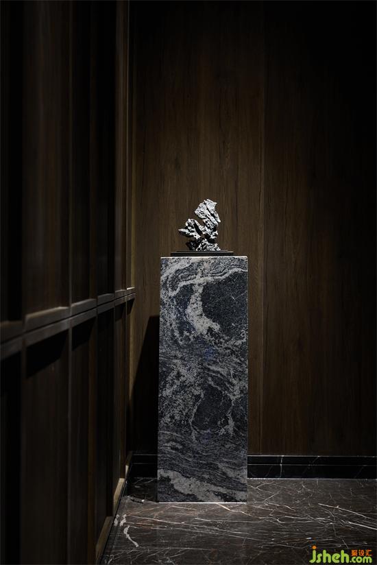 推開大門,映私人會所設計入眼簾是經(jīng)過3個不同工藝制作的木化石,木化石旁邊是手工擦拭出來的銅制屏風加上深色木飾面結(jié)合在私人會所設計一起形成一個低調(diào)奢華的前廳。