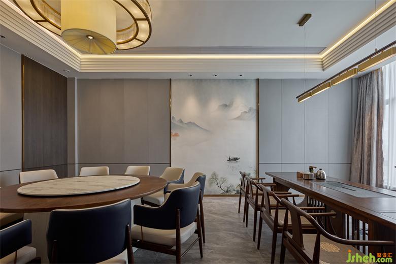 立意讓四方朋友在這座山水間小城里可以有賓至如歸的感受,談笑有私人會所設計鴻儒、品茶論酒,在空間里帶給朋友有一步一景的觀賞感。