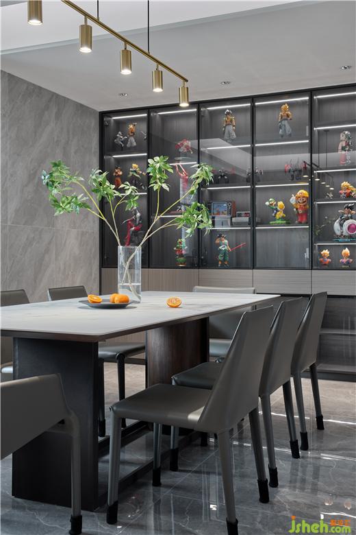 入戶大面的鞋柜,滿足全家人的需求。接著映入眼簾的是餐廳那排裝飾柜里面的動(dòng)漫手辦,是否讓你想起了童年。電視背景墻巧妙地把所有的電線插座隱藏到了側(cè)面的半開放格里,顯得電視背景干凈利落,家居設(shè)計(jì)符合男主人有點(diǎn)潔癖加強(qiáng)迫性的要求,一盤天堂鳥隔壁擺放的是“豆腐塊”加上毛毛蟲的沙發(fā)組合,顏值高且舒適度100分,往上一躺全身心都放松了。