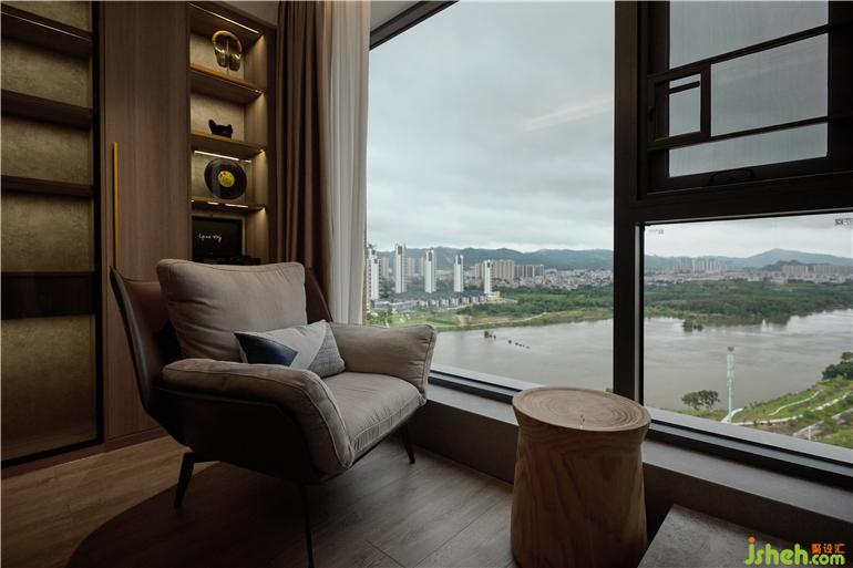 客廳與書房的綠植區(qū)采用了鋼化玻璃斜拼隔斷,使南北空氣形成對(duì)流讓植物植物更好的生長(zhǎng)。裝修設(shè)計(jì)品茗區(qū)地面采用柔和磨砂磚,植物區(qū)采用了深色的毛石上墻,為這個(gè)小小的綠植區(qū)增添了出色的背景。
