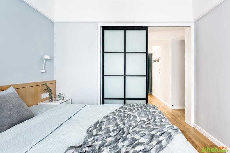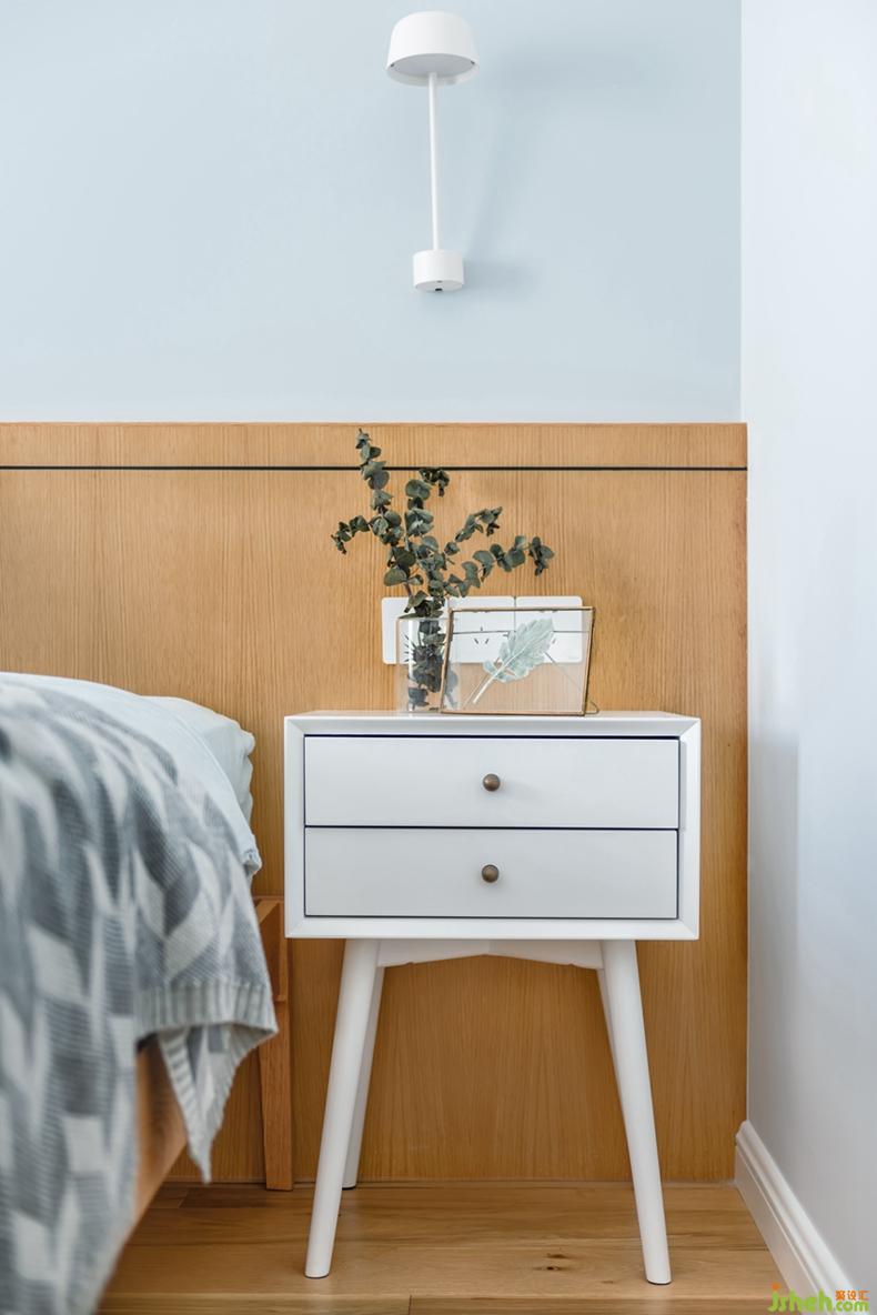主臥采用低飽和度灰綠色,穿插原木色調(diào),營造溫柔靜謐的氛圍,針織毯隨意的搭在床上或者裹在身上,慵懶的感覺令身心愉悅。
