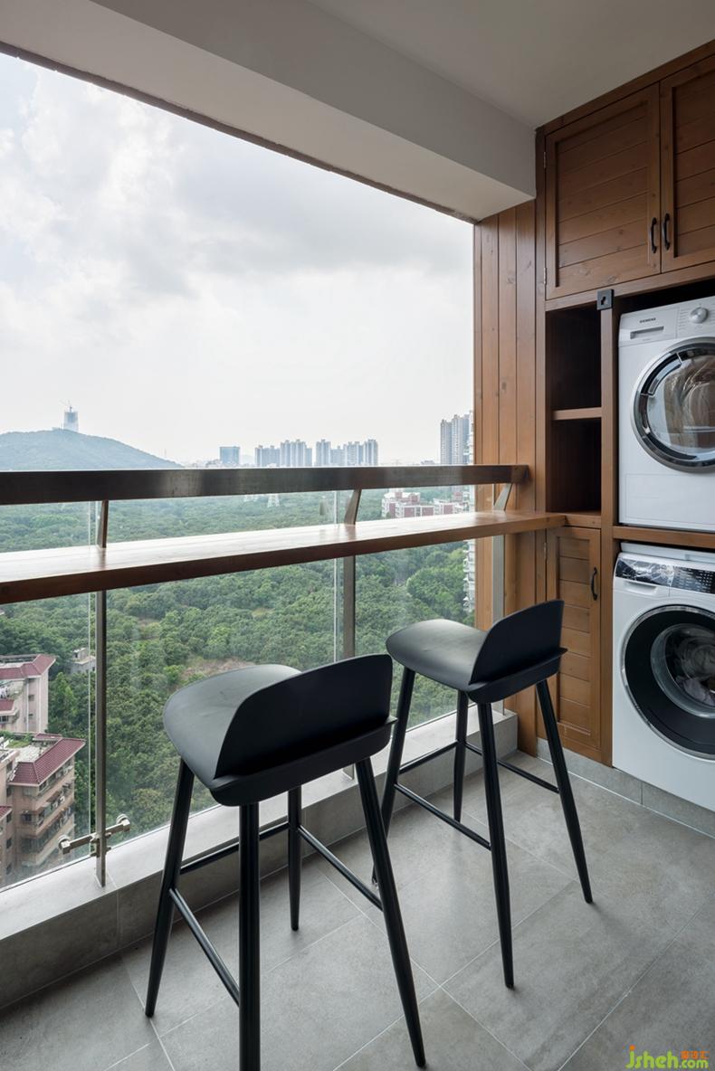 陽臺面向大南山,風(fēng)景獨好,設(shè)計師利用陽臺欄桿設(shè)計了一處吧臺,憑欄而坐,不辜負(fù)每一處風(fēng)景。
