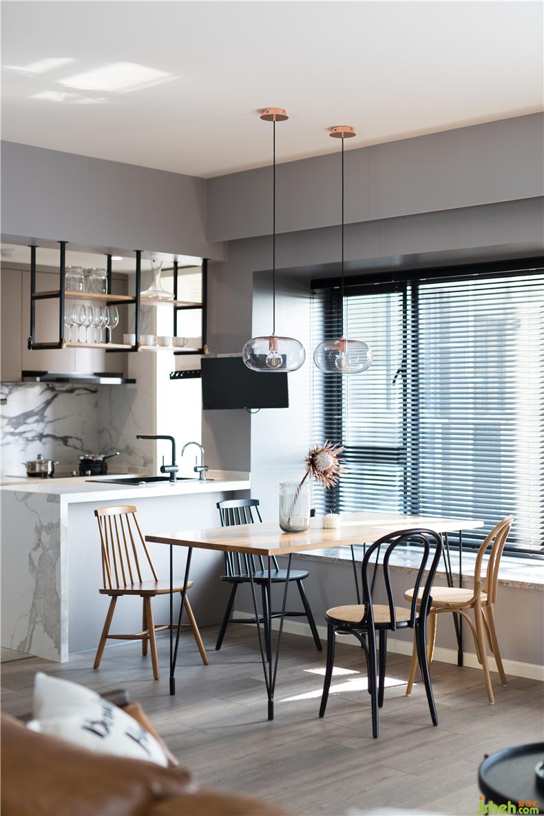 簡約的線條餐桌椅,鐵藝與木質(zhì)的搭配,工業(yè)風下掛式的酒杯架,室內(nèi)設(shè)計師猶如愜意的咖啡廳文藝且情調(diào)。尤其是在閑暇時光,坐在一角落,夕陽的余暉,淺淺映射在桌面,一段輕柔舒緩的音樂,閉上雙眸,靜靜享受那份閑暇,托杯細品貌似苦澀卻很清甜的咖啡。